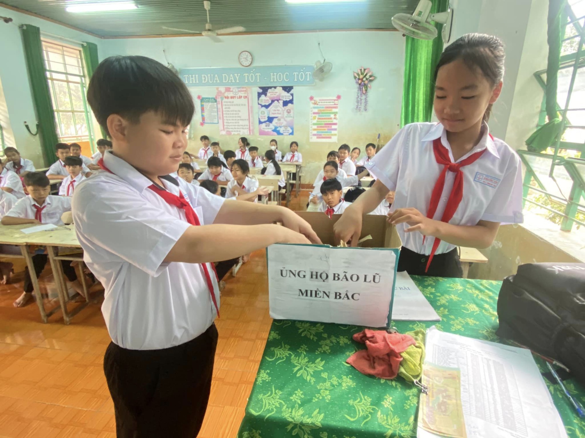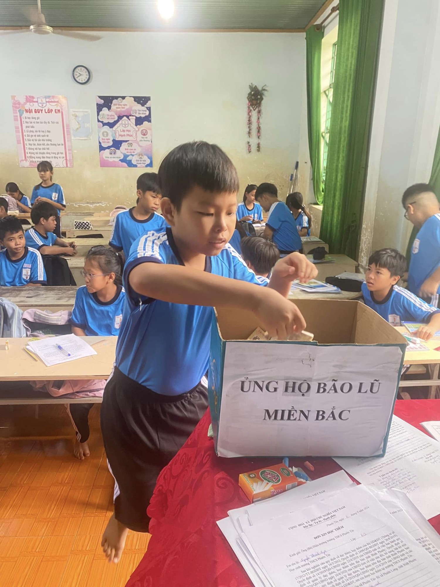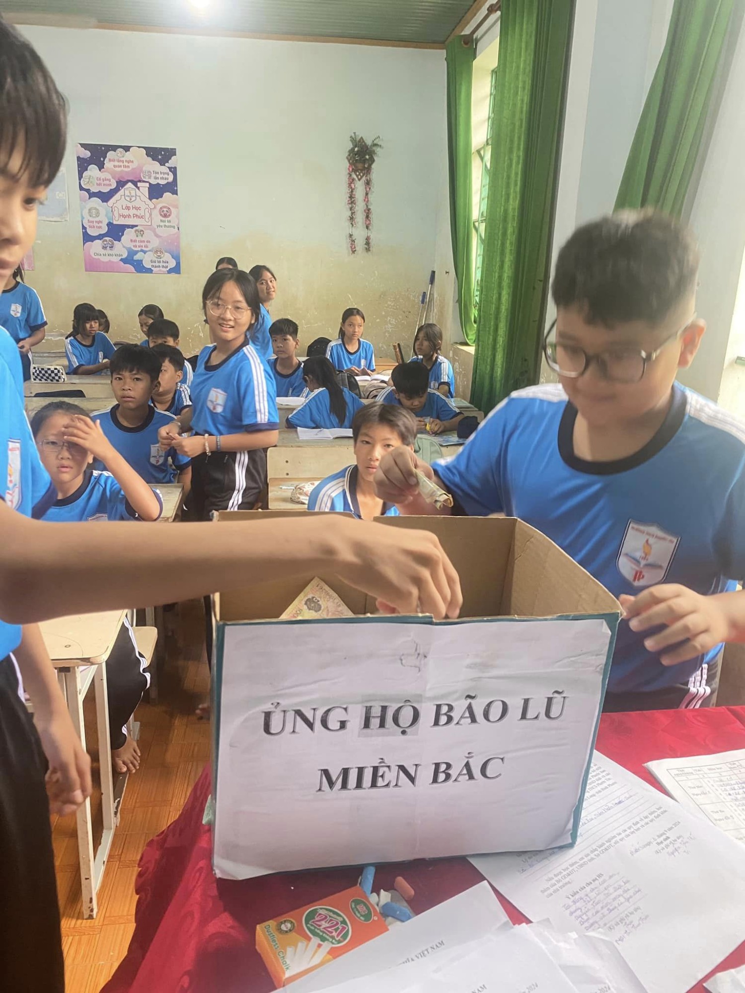 Trước tình hình đó, Chi bộ, Ban giám hiệu, Ban chấp hành Công đoàn, Liên đội thống nhất kêu gọi toàn thể các thầy cô giáo, các em học sinh trong toàn trường với tinh thần “Lá lành đùm lá rách, lá rách ít đùm lá rách nhiều” chia sẻ một phần thu nhập của mình ủng hộ đồng bào các tỉnh miền Bắc đang bị ảnh hưởng bởi thiên tai, lũ lụt.