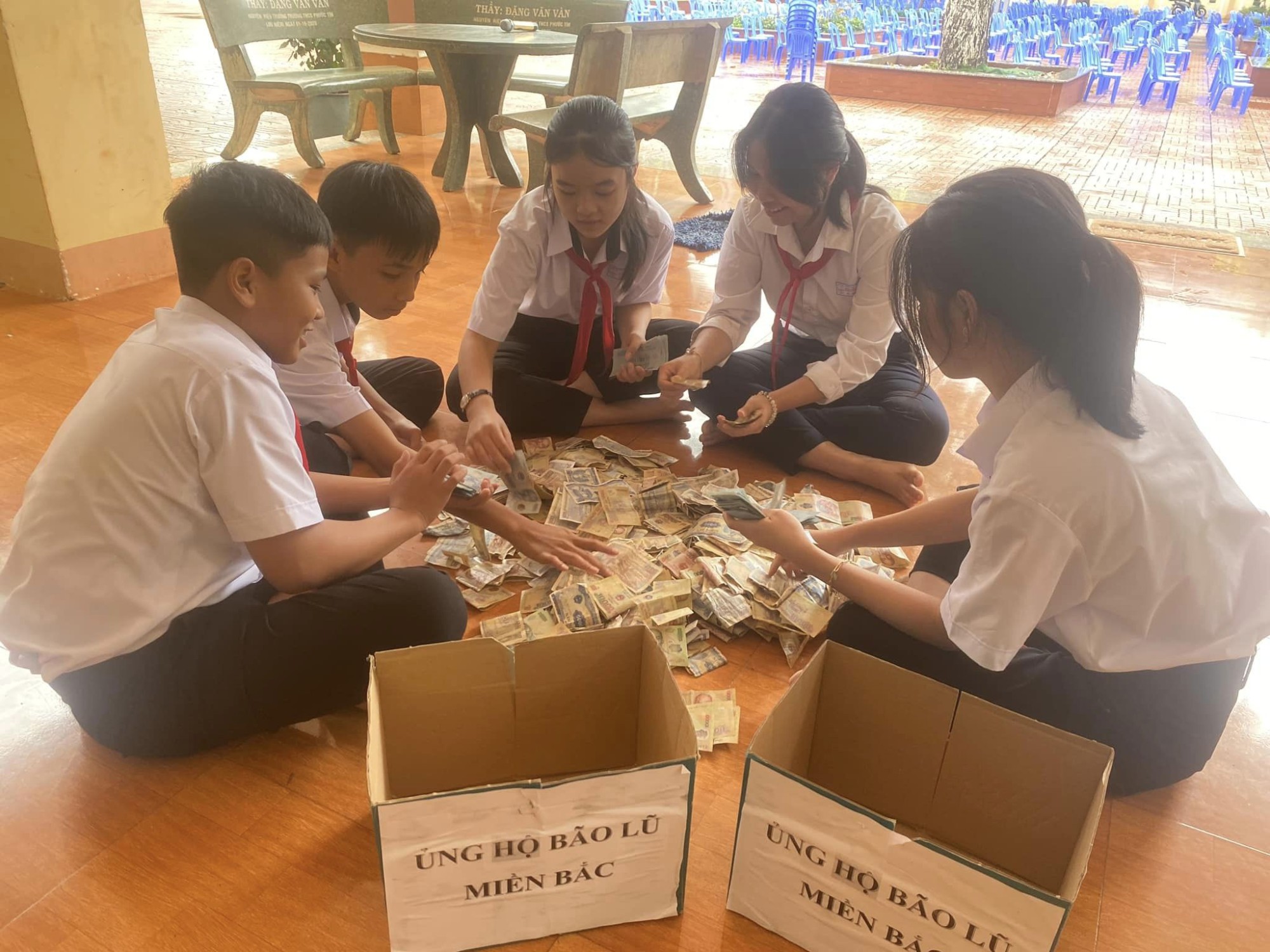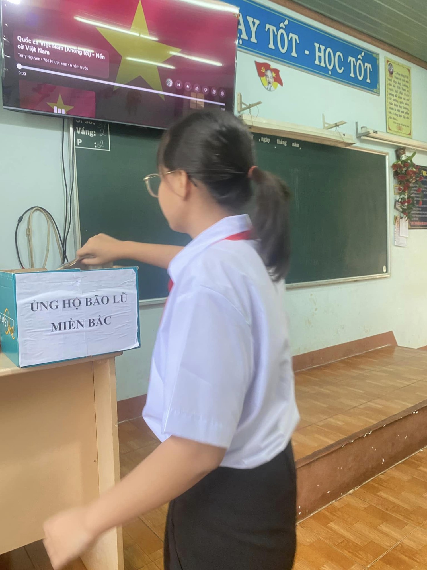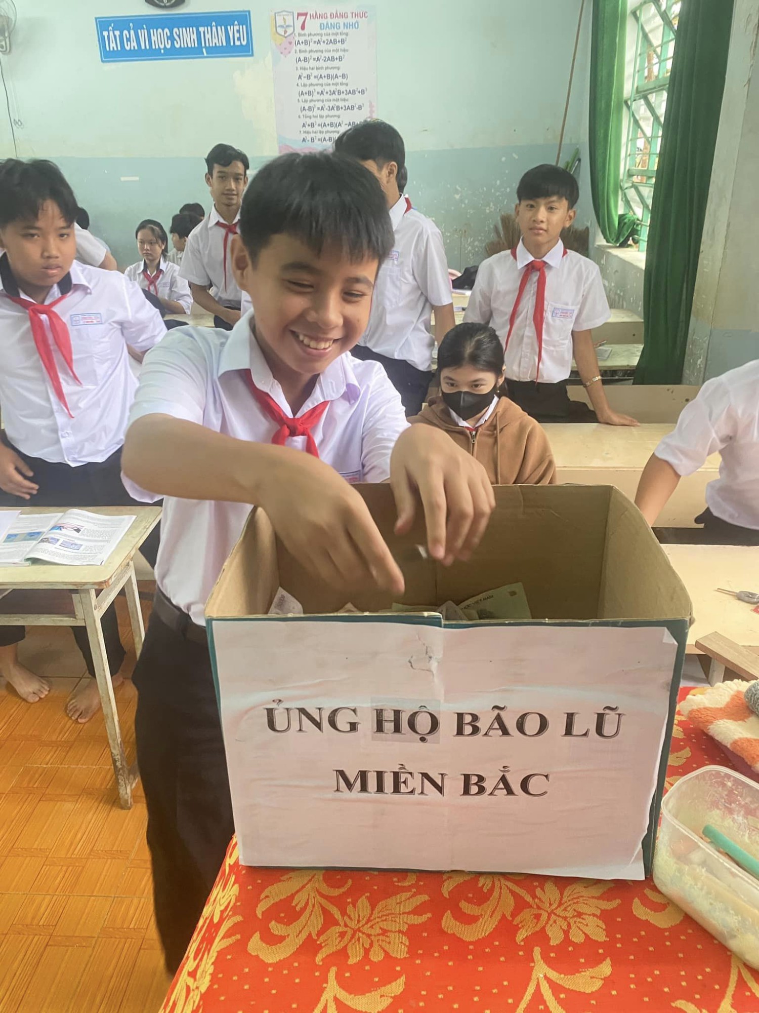 Trước tình hình đó, Chi bộ, Ban giám hiệu, Ban chấp hành Công đoàn, Liên đội thống nhất kêu gọi toàn thể các thầy cô giáo, các em học sinh trong toàn trường với tinh thần “Lá lành đùm lá rách, lá rách ít đùm lá rách nhiều” chia sẻ một phần thu nhập của mình ủng hộ đồng bào các tỉnh miền Bắc đang bị ảnh hưởng bởi thiên tai, lũ lụt.